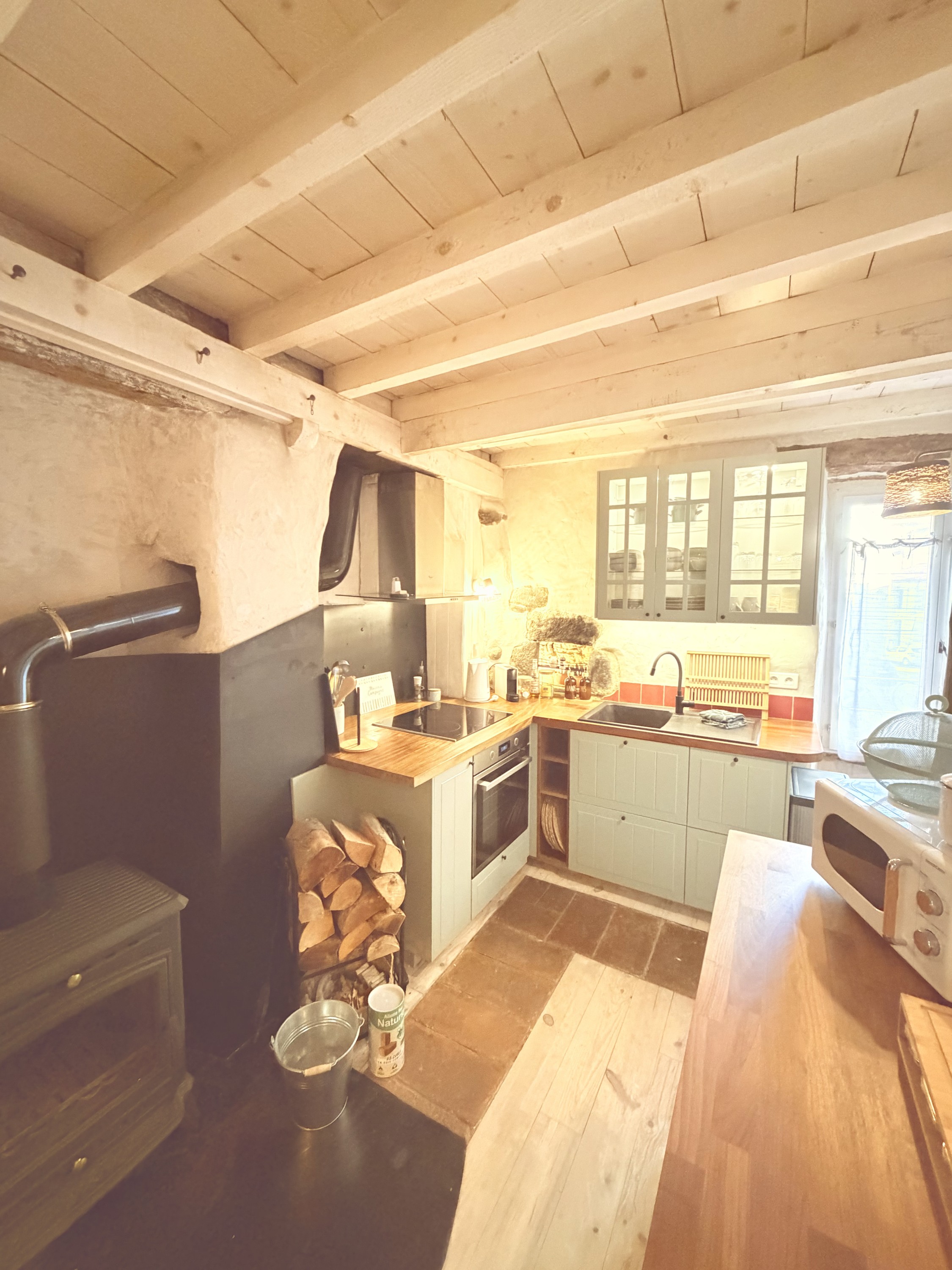 Derrière la façade se cache un intérieur chaleureux et convivial avec des murs en pierre naturelle, des poutres en bois et des couleurs douces. Tout a été aménagé avec soin pour que la maison procure immédiatement une sensation de calme et de bien-être.
